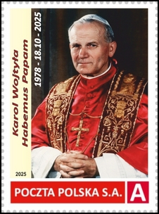 Wrzesień 2025 Karol Wojtyła Habemus Papam 1978 - 18.10 - 2025 Zamawiający: Zbigniew Lewkowicz Nakład: brak informacji [arkusz 3+3+3] (numery arkuszy: brak informacji) Projekt: Zbigniew Lewkowicz + GKK Uwagi: nadruk na arkuszu: XXV DZIEŃ PAPIESKI 12.10.2025 - góra, Święty Jan Paweł II - strona lewa, Karol Wojtyła - Habemus Papam - 18.10.1978 - strona prawa, Emsja prywatna - dół |