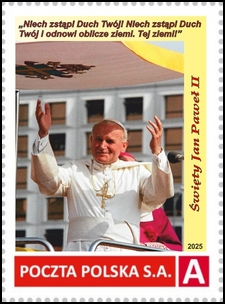 Wrzesień 2025 XXV Dzień Papieski 12.10.2025 "Święty Jan Paweł II. Prorok nadziei" Zamawiający: Zbigniew Lewkowicz Nakład: brak informacji [arkusz 3+3+3] (numery arkuszy: brak informacji) Projekt: Zbigniew Lewkowicz + GKK Uwagi: nadruk na arkuszu: XXV DZIEŃ PAPIESKI 12.10.2025 - góra, Święty Jan Paweł II - strona lewa, Karol Wojtyła - Habemus Papam - 18.10.1978 - strona prawa, Emsja prywatna - dół |