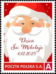 Grudzień 2025 Zamawiający: Poczta Polska S.A. Nakład: 4000 sztuk [500 arkuszy 8+1] (numery arkuszy: brak informacji) Projekt: Joanna Fleszar - Haspert Źródło informacji: sklep.poczta-polska.pl Uwagi: nadruk na arkuszu: Dzień / Św. Mikołaja / 6.12.2025 - góra, nad lewym znaczkiem, dół, pod prawym znaczkiem |
