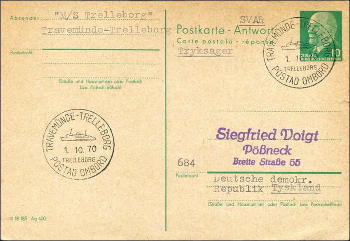 Promy kolejowe (c.d.) Trelleborg - niemiecki prom kolejowy. Zwodowany w 1981 roku przez stocznię Öresundsvarvet Ab, Landskrona (Szwecja) na zamówienie Statens Järnvägars Färjedrift (SJ). Od 28.05.1982 r. w eksploatacji na linii promowej Königslinie Sassnitz (Niemcy) – Trelleborg (Szwecja). W październiku 1991 r. zmiana nazwy firmy na SweFerry Ab. W 1999 firma SweFerry Ab. została sprzedana firmie Stena Line z Göteborga. We wrześniu 2014 roku wycofany z obsługi promowej. W 2016 r. sprzedany firmie MH Marine Company w Majuro (Wyspy Marshalla), zmiana nazwy na Sunny. Prom obecnie należy do firmy Karaneh Lines z Iranu.