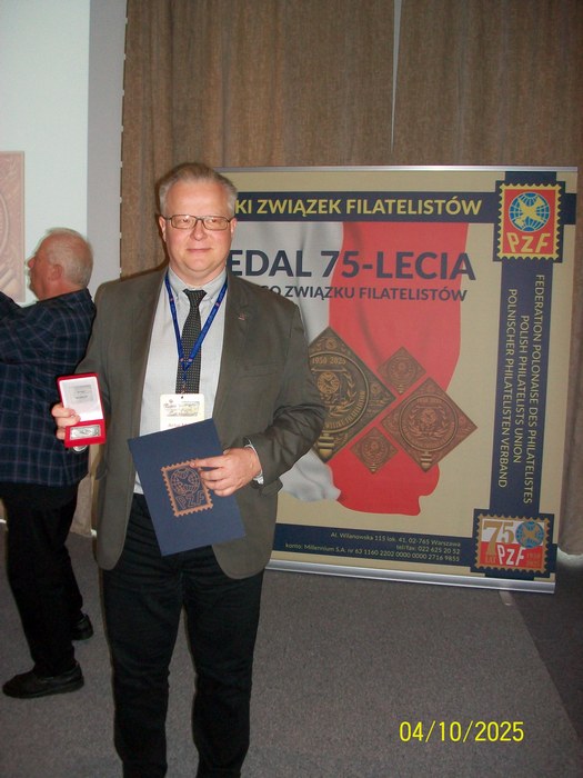 XXIII Zjazd Delegatów Polskiego Związku Filatelistów. W Warlitach Wielkich koło Ostródy odbył się XXIII Zjazd Delegatów Polskiego Związku Filatelistów. Uczestniczyli w nim członkowie OKZ PZF "Kolejnictwo" im. Ernesta Adama Malinowskiego: wiceprezes Artur Marsy (także członek ustępującego ZG PZF oraz delegat Okręgu Wrocławskiego PZF), sekretarz Krzysztof Błaszczyk (delegat Okręgu Łódzkiego PZF) oraz Adam Szuler (redaktor naczelny miesięcznika "Filatelista"). Z rąk Prezesa Zarządu Głonego PZF Henryka Monkosa kol. Artur otrzymał srebrny medal 75-lecia PZF. Gratulujemy. W trakcie zjazdu kol. Artur pełnił funkcję Przewodniczącego Komisji Uchwał i Wniosków. [KB].