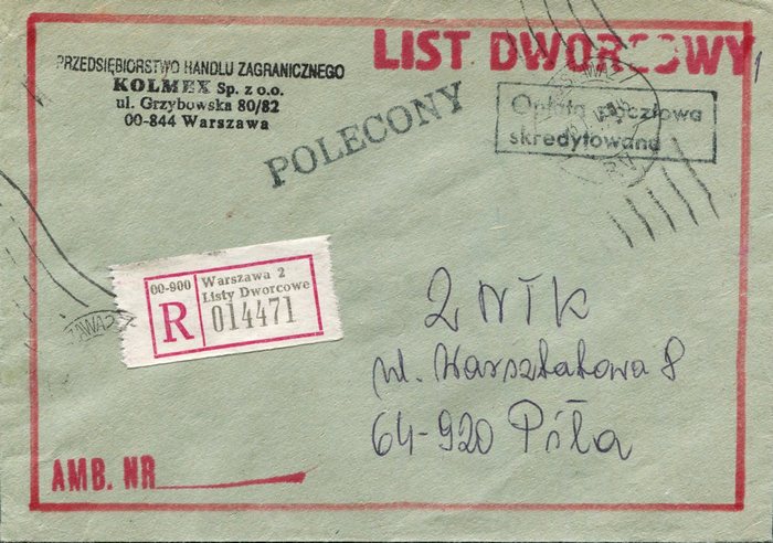 List dworcowy, przesyłka listowa nadawana w dworcowym urzędzie pocztowym na określony kurs ambulansu pocztowego i odbierana przez adresata w dworcowym upt miejsca przeznaczenia; wymaga oznaczenia w postaci czerwonej ramki grubości 1 cm (nieco oddalonej od brzegów koperty) i napisu "List dworcowy" lub "Przesyłka dworcowa" oraz podania numeru ambulansu; podlega odrębnej popłacie taryfowej. Nadawcy stosują zazwyczaj specjalne koperty i naklejki własnego nakładu. List dworcowy jest najszybszą przesyłką listową, wymaga jednak codziennego zgłaszania się odbiorcy po odbiór (nawet kilkakrotnie w ciągu dnia); korzystają z listów dworcowych instytucje gospodarcze, administracyjne i prasa. [Encyklopedia filatelistyki, red. nacz. Tadeusz Hampel, Wydawnictwo Naukowe PWN, Warszawa 1993, s. 282]