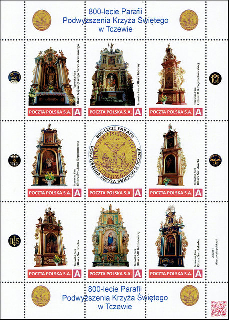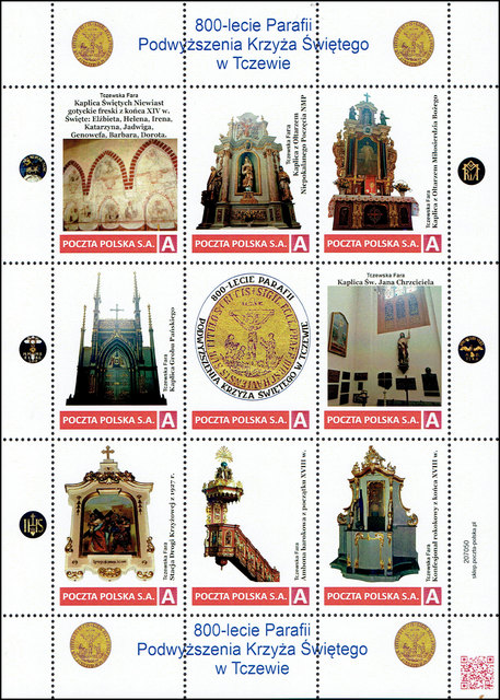 Z okazji tak pięknego Jubileuszu z inicjatywy Adama Murawskiego, tczewskiego filatelisty Poczta Polska S.A. wydała trzy dziewięcioznaczkowe arkusze Spersonalizowanych Znaków Opłaty Pocztowej w opcji MójZNACZEK. Grafiki na poszczególnych znaczkach przedstawiają nie tylko zewnętrzną bryłę kościoła, ale także jego bogate wyposażenie taki jak: wszystkie ołtarze i kaplice, ambonę, kamienną chrzcielnicę, jeden z konfesjonałów oraz inne najcenniejsze zabytki tczewskiej Fary, w tym Krzyż Relikwiarzowy z poczt. XV w. oraz Monstrancję 800-lecia Parafii ufundowaną przez darczyńców w Roku Jubileuszowym. W wydanie tych arkuszy MojegoZNACZKA oprócz pomysłodawcy ich wydania duży wkład mają również: Marta Murawska, autorka większości zdjęć, Marian Stawicki, obróbka graficzna zdjęć oraz Piotr Topolski z Warszawy, autor projektu poszczególnych znaczków i całych arkuszy. W związku z wycofaniem się Poczty Polskiej S.A. z druku kartek beznominałowych Adam Murawski wydał trzy prywatne wydawnictwa w/w kartek. Stanowią one uzupełnienie do wydań MojegoZNACZKA Poczty Polskiej S.A. i zapewne staną się częścią zbiorów niektórych filatelistów. Dotychczasowy nakład MojegoZNACZKA po 51 arkuszy z każdego wzoru został już rozdysponowany.