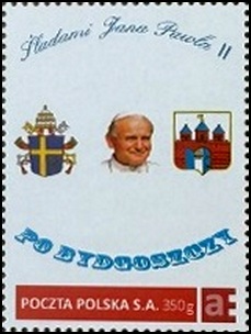 Wrzesień 2013 Śladami Jana Pawła II po Bydgoszczy (8) Jan Paweł II Honorowy Obywatel Bydgoszczy Zamawiający: Zbigniew Drost Nakład: brak danych [arkusz 6+3] (numery arkuszy: m.in. 000537) + [arkusz 3+6] (numery arkuszy: m.in. 000543) Projekt: Waldemar Kawiński Źródło informacji: Kronika 2013 Zarządu Okręgu Polskiego Związku Filatelistów w Bydgoszczy, s. 22 Uwagi: nadruk na arkuszu: Honorowy Obywatel Bydgoszczy - góra, Ojciec Święty Jan Paweł II - dół |