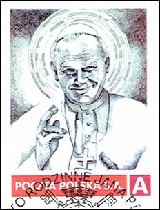 Styczeń 2025 Święty Jan Paweł II Zamawiający: Zbigniew Lewkowicz Nakład: 39 sztuk [13 arkuszy 3+3+3] (numery arkuszy: m.in. 194971) Projekt: Zbigniew Lewkowicz + GKK Źródło informacji: ze zbioru Adama Murawskiego Uwagi: nadruk na arkuszu: Emisja prywatna - dół |