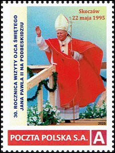 Maj 2025 105 rocznica urodzin Jana Pawła II 18.05.2025 r. rysunek Krzysztof Biedrzyński Zamawiający: Wydawnictwo VANDRE Nakład: brak danych [arkusz 9] (numery arkuszy: brak danych) Projekt: brak danych Źródło informacji: Biuletyn Filatelistyczny 20/2025, s. 3 Uwagi: nadruk na arkuszu: 105 ROCZNICA URODZIN JANA PAWŁA II / 18-05-2025 - góra i dół |