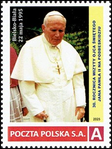 Wrzesień 2025 Karol Wojtyła Habemus Papam 1978 - 18.10 - 2025 Zamawiający: Zbigniew Lewkowicz Nakład: brak informacji [arkusz 3+3+3] (numery arkuszy: brak informacji) Projekt: Zbigniew Lewkowicz + GKK Uwagi: nadruk na arkuszu: XXV DZIEŃ PAPIESKI 12.10.2025 - góra, Święty Jan Paweł II - strona lewa, Karol Wojtyła - Habemus Papam - 18.10.1978 - strona prawa, Emsja prywatna - dół |