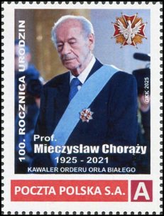 Maj 2025 Prof. Mieczysław Chorąży 1925-2021 100. rocznica urodzin Zamawiający: Gliwicki Klub Kolekcjonerów Nakład: 35 sztuk [35 arkuszy 1-1-1-1-1-1-1-1-1] (numery arkuszy: m.in. 199197, 201752) Projekt: Stanisław Buławski i Włodzimierz Myśliński Źródło informacji: Biuletyn Filatelistyczny 22/2025, s. 4 Uwagi: nadruk na arkuszu: Prof. Mieczysław Chorąży - 100. rocznica urodzin - góra, Z Janówki w świat - strona lewa, Pasja w wolnych chwilach - strona prawa, Gliwicki Klub Kolekcjonerów - dół |
