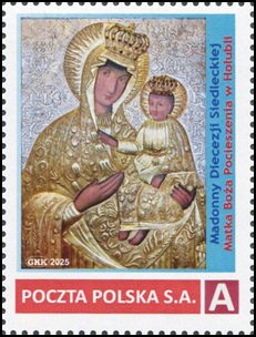 Sierpień 2025 Madonny Diecezji Siedleckiej Matka Boża Pocieszenia w Hołubli Zamawiający: Gliwicki Klub Kolekcjonerów Nakład: 33 sztuki [33 arkusze 1+1+1+1+1+1+1+1+1] (numery arkuszy: m.in. 206315) Projekt: Władysław Gębczyk Źródło informacji: Biuletyn Filatelistyczny 36/2025, s. 4 Uwagi: nadruk na arkuszu: Madonny Diecezji Siedleckiej - góra, Gliwicki Klub Kolekcjonerów - dół |