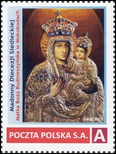 Sierpień 2025 Madonny Diecezji Siedleckiej Matka Boża Budzieszyńska w Mokobrodach Zamawiający: Gliwicki Klub Kolekcjonerów Nakład: 33 sztuki [33 arkusze 1+1+1+1+1+1+1+1+1] (numery arkuszy: m.in. 206315) Projekt: Władysław Gębczyk Źródło informacji: Biuletyn Filatelistyczny 36/2025, s. 4 Uwagi: nadruk na arkuszu: Madonny Diecezji Siedleckiej - góra, Gliwicki Klub Kolekcjonerów - dół |