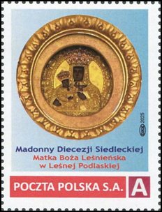 Sierpień 2025 Madonny Diecezji Siedleckiej Matka Boża Leśnieńska z Leśnej Podlaskiej Zamawiający: Gliwicki Klub Kolekcjonerów Nakład: 33 sztuki [33 arkusze 1+1+1+1+1+1+1+1+1] (numery arkuszy: m.in. 206315) + brak informacji [arkusz 9] (numery arkuszy: brak informacji) Projekt: Władysław Gębczyk Źródło informacji: Biuletyn Filatelistyczny 36/2025, s. 4; kzgkk.pl Uwagi: nadruk na arkuszu: Madonny Diecezji Siedleckiej - góra, Gliwicki Klub Kolekcjonerów - dół + Matka Boża Leśniańska - góra, Madonny Diecezji Siedleckiej - strona lewa i prawa, Gliwicki Klub Kolekcjonerów - dół |