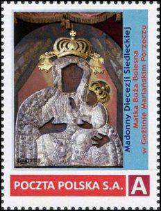Sierpień 2025 Madonny Diecezji Siedleckiej Matka Boża Bolesna w Goźlinie Mariańskim Porzeczu Zamawiający: Gliwicki Klub Kolekcjonerów Nakład: 33 sztuki [33 arkusze 1+1+1+1+1+1+1+1+1] (numery arkuszy: m.in. 206315) Projekt: Władysław Gębczyk Źródło informacji: Biuletyn Filatelistyczny 36/2025, s. 4 Uwagi: nadruk na arkuszu: Madonny Diecezji Siedleckiej - góra, Gliwicki Klub Kolekcjonerów - dół |
