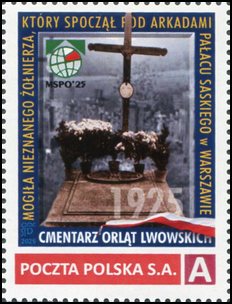 Sierpień 2025 Mogiła Nieznanego Żołnierza, który spoczął pod arkadami Pałacu Saskiego w Warszawie Cmentarz Orląd Lwowskich MSPO'25 1925 Zamawiający: DIVERTIMENTO - Klub Filatelistów o Zainteresowaniach Muzycznych, Kielce Nakład: brak informacji [arkusz 9] (numery arkuszy: brak informacji) Projekt: Adam Kowalewski Źródło informacji: Biuletyn Filatelistyczny 35/2025, s. 5 Uwagi: nadruk na arkuszu: XXXIII / MIĘDZYNARODOWY SALON / PRZEMYSŁU OBRONNEGO / KIELCE / 2-5 WRZEŚNIA 2025 - góra, nad lewym znaczkiem, 100 LAT / 1925-2025 / GROBU NIEZNANEGO ŻOŁNIERZA / w WARSZAWIE - góra, nad środkowym znaczkiem |