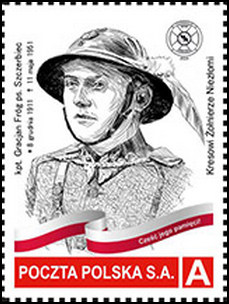 Wrzesień 2025 Kresowi Żołnierze Niezłomni kpt. Gracjan Fróg ps. Szczerbiec 8 grudnia 1911 11 maja 1951 Zamawiający: Fundacja Non Notus Nakład: brak informacji [arkusz 3+3+3] (numery arkuszy: brak informacji) Projekt: Daniel Miłaczewski, projekt pomnika i grafik - Tomasz Łukaszczyk Źródło informacji: Biuletyn Filatelistyczny 35/2025, s. 5 Uwagi: nadruk na arkuszu: Braniewo / Kresowych - góra, nad lewym znaczkiem, Pomnik / Żołnierzy - góra, nad środkowym znaczkiem, Braniewo / Niezłomnych - góra, nad prawym znaczkiem, kpt. / Jan / Borysewicz / ps. Krysia - dół, pod lewym znaczkiem, projekt pomnika i grafik / Tomasz Łukaszczyk / projekt znaczków / Daniel Miłaczewski - dół, pod środkowym znaczkiem, kpt. / Gracjan / Fróg / ps. Szczerbiec - dół, pod prawym znaczkiem |
