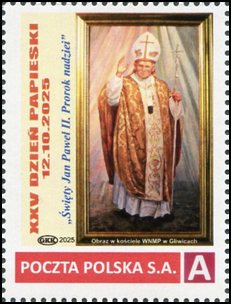 Sierpień 2025 XXV Dzień Papieski 12.10.2025 "Święty Jan Paweł II. Prorok nadziei" Zamawiający: Gliwicki Klub Kolekcjonerów Nakład: 180 sztuk [20 arkuszy 9] (numery arkuszy: m.in. 206380) Projekt: Władysław Gębczyk Źródło informacji: kzgkk.pl Uwagi: nadruk na arkuszu: XXV DZIEŃ PAPIESKI - góra, Gliwicki Klub Kolekcjonerów - dół |