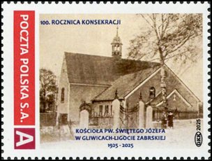 Wrzesień 2025 100. rocznica konsekracji kościoła pw. Świętego Józefa w Gliwicach-Ligocie Zabrskiej 1925-2025 Zamawiający: Gliwicki Klub Kolekcjonerów Nakład: 54 sztuki [6 arkuszy 9] (numery arkuszy: m.in. 207304-207305) Projekt: Władysław Gębczyk Źródło informacji: kzgkk.pl Uwagi: nadruk na arkuszu: 100. ROCZNICA KONSEKRACJI KOŚCIOŁA / PW. ŚWIĘTEGO JÓZEFA / W GLIWICACH - LIGOCIE ZABRSKIEJ 1925 - 2025 - strona prawa, Gliwicki Klub Kolekcjonerów - strona lewa |