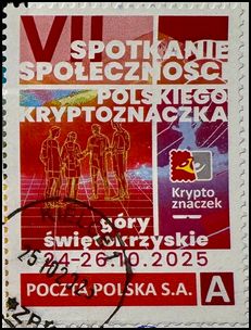 Październik 2025 VII Spotkanie Spoleczności Polskiego Kryptoznaczka góry świętokrzyskie 24-26.10.2025 Kryptoznaczek Zamawiający: brak danych Nakład: brak danych [arkusz 9] numery arkuszy: brak danych) Projekt: brak danych Źródło informacji: Biuletyn Filatelistyczny 46/2025, s. 3 |