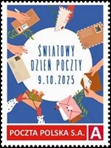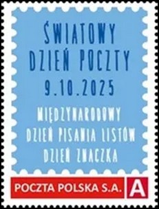 Październik 2025 Światowy Dzien Poczty 9.10.2025 Zamawiający: Poczta Polska S.A. Nakład: 2400 sztuk [300 arkuszy 8+1] numery arkuszy: brak danych) Projekt: brak danych Źródło informacji: sklep.poczta-polska.pl Uwagi: nadruk na arkuszu: ŚWIATOWY / DZIEŃ POCZTY / 9.10.2025 - góra, nad środkowym znaczkiem, MIĘDZYNARODOWY / DZIEŃ PISANIA LISTÓW / DZIEŃ ZNACZKA - dół, pod środkowym znaczkiem |