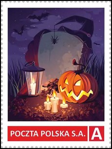 Październik 2025 Zamawiający: Poczta Polska S.A. Nakład: 1050 sztuk [350 arkuszy 3+3+3] numery arkuszy: brak danych) Projekt: Agnieszka Sancewicz Źródło informacji: sklep.poczta-polska.pl Uwagi: nadruk na arkuszu: 2025 / HALLOWEEN - góra, nad lewym znaczkiem |