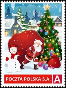 Grudzień 2025 Dzień Św. Mikołaja 6.12.2025 Zamawiający: Poczta Polska S.A. Nakład: 500 sztuk [500 arkuszy 8+1] (numery arkuszy: brak informacji) Projekt: Joanna Fleszar - Haspert Źródło informacji: sklep.poczta-polska.pl Uwagi: nadruk na arkuszu: Dzień / Św. Mikołaja / 6.12.2025 - góra, nad lewym znaczkiem, dół, pod prawym znaczkiem |
